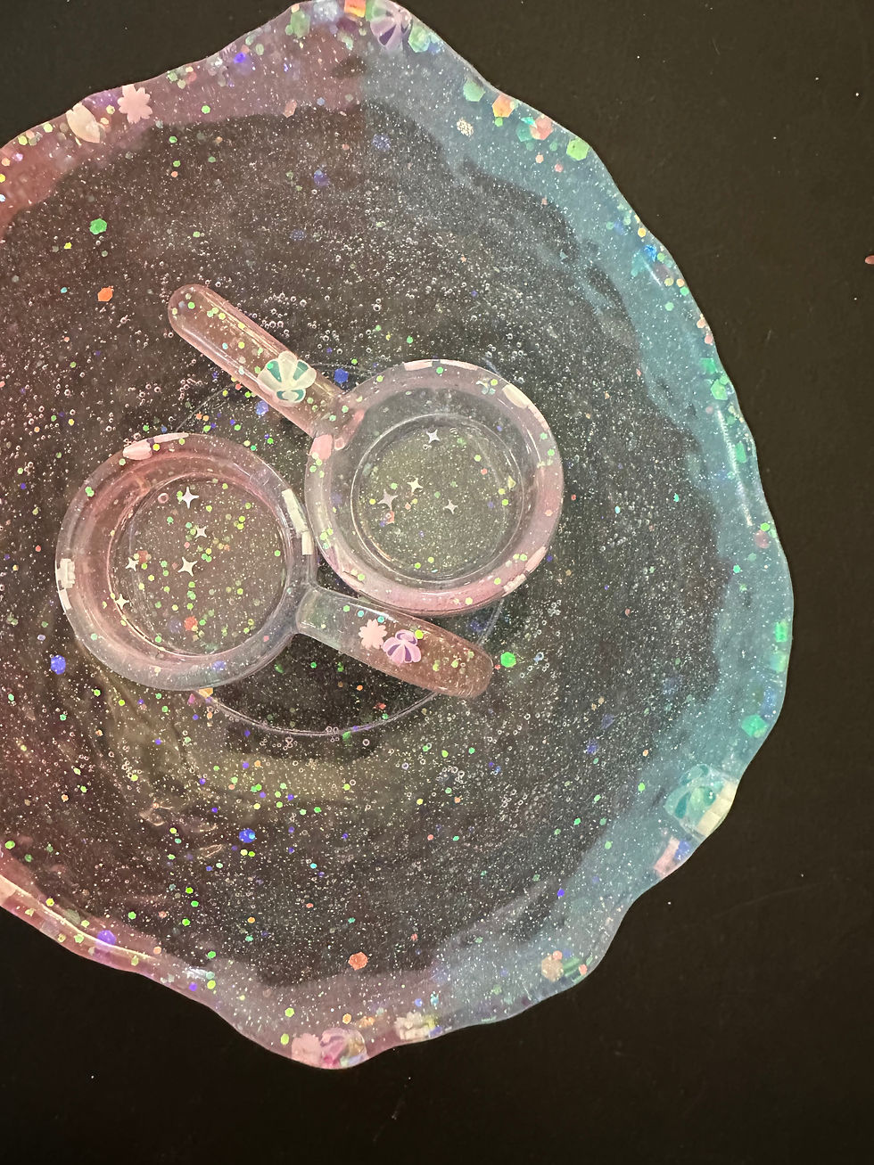 Blue Resin Bowl and Spoon Duo- Crafted with Ladybugs and Flowers